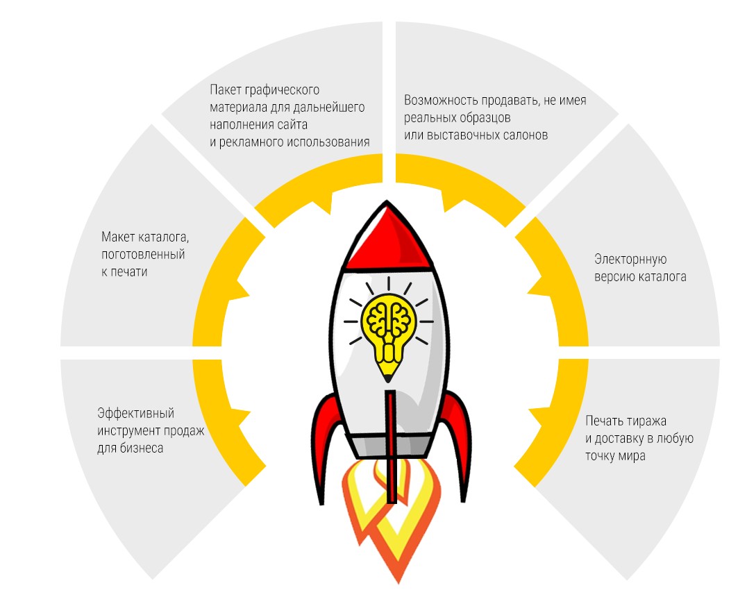Каждый каталог - это уникальный проект. Мы углубляемся в специфику каждой компании не только с точки зрения дизайна, но и с точки зрения маркетинга, что в дальнейшем позволяет создавать эффективный инструмент продаж.